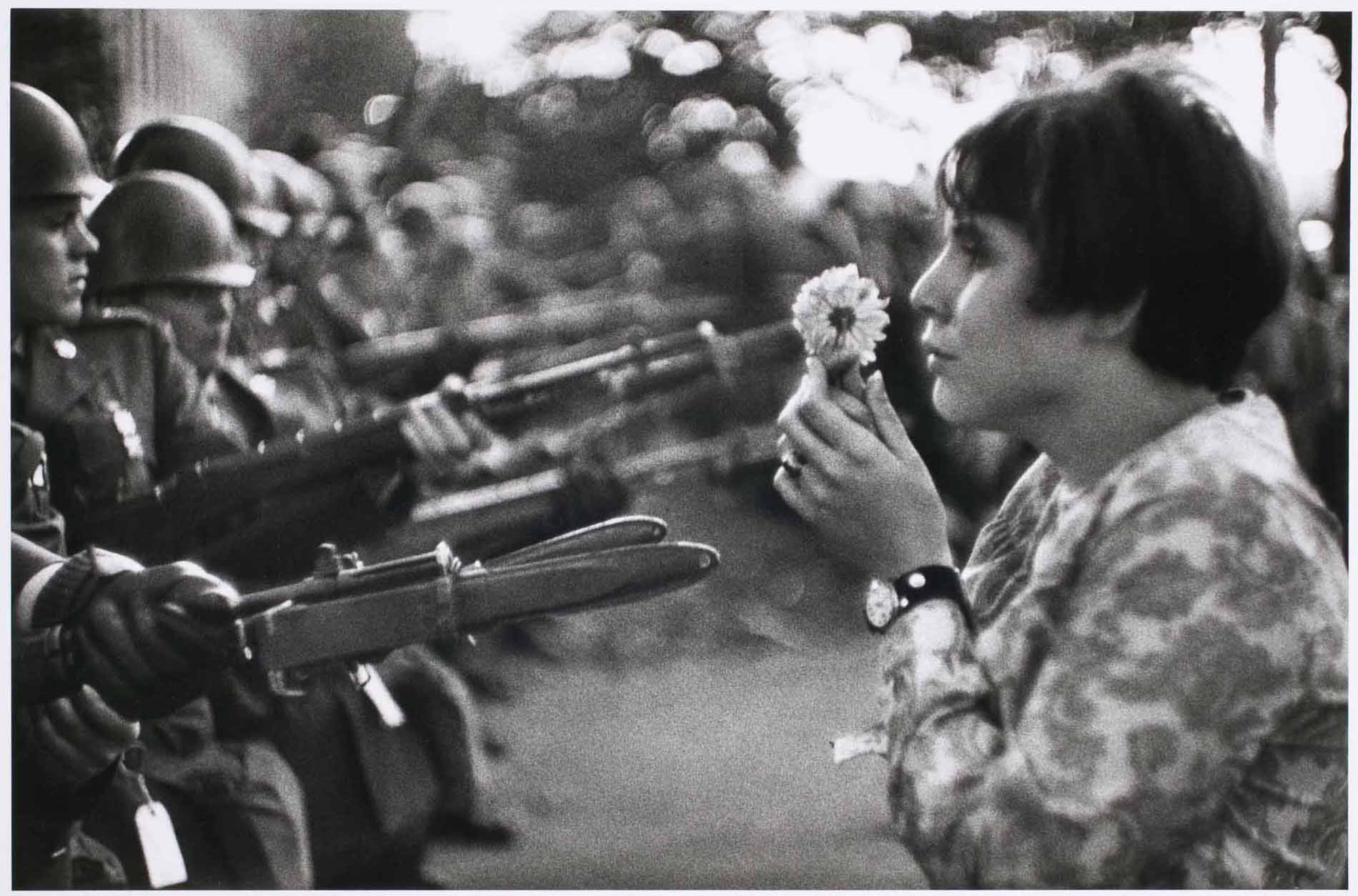 Pues fíjate de esta peli no sabía nada, tiene buena pinta a ver si un día la encuentro y puedo verla ( gracias a ti y a GELU) de quien sí sé, porque me gustan muchísimo sus fotografías es de Riboud, el fotógrafo del corazón como le llaman muchos, esa fotografía de la que hablas, la de la mujer con una flor protestando por la guerra de Vietnam es uno de los iconos del pacifismo ... espera a ver si te la encuentro, merece la pena no olvidarla es ESTA ... luego, pasando los años de otra forma se repitió la imagen con aquel otro chino valiente que se colocó frente a los tanques en la plaza de Tiananmen ¿ lo recuerdas?... el caso es q esta chinita fumando frente al cine de tu precios fotografía resulta tan europea que me parece rarísimo que sea china y no japonesa, más q nada con lo anti occidentalista q era el chiflado d Mao Mao Tse-tung, pero todo puede ser , además, no diferencio chinos de japoneses, ni tampoco sus letras, así q si tu dices que es china, no se hable más mi querida CARMEN/WEN MmuaaaksS! enorme chi chun chan jaja